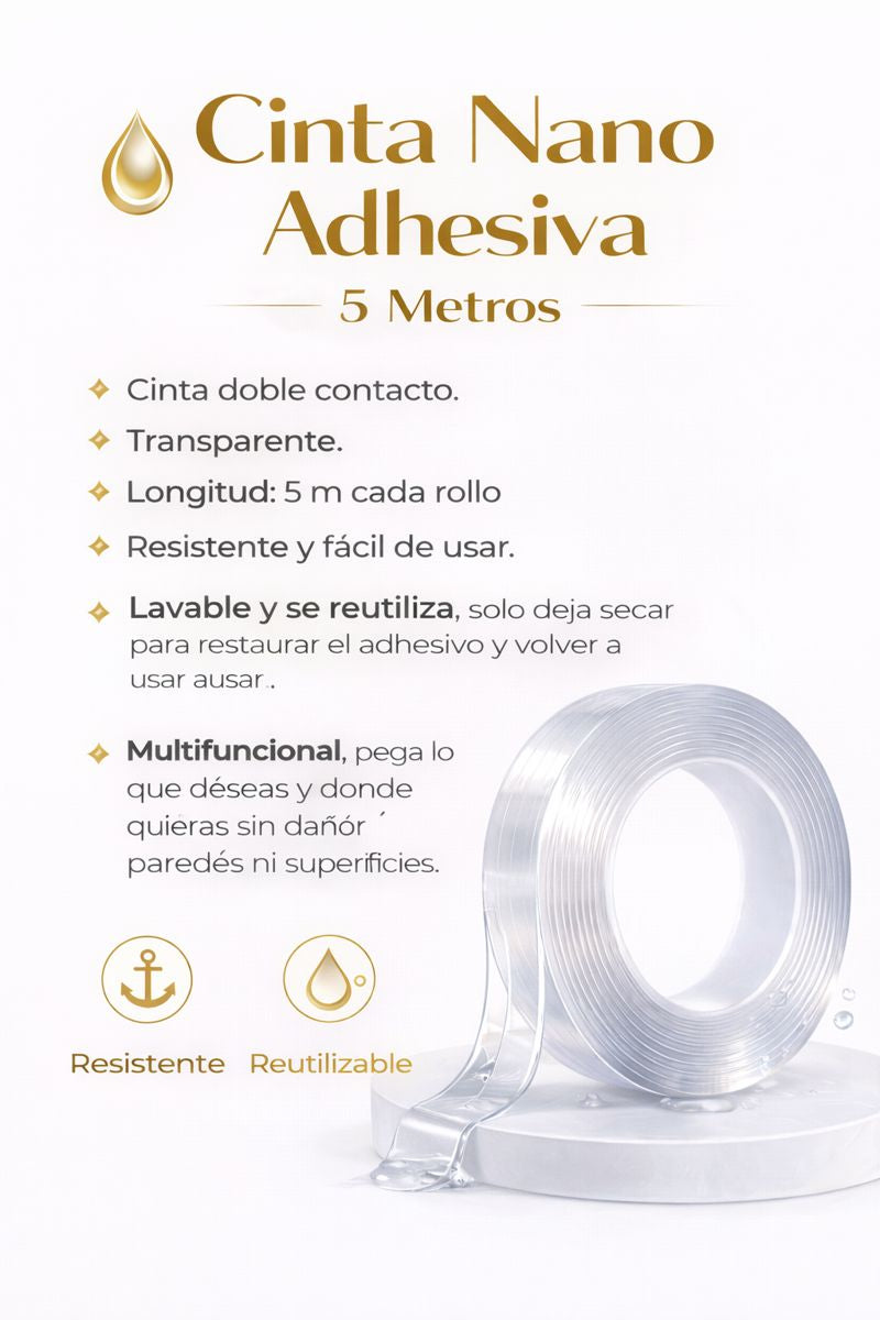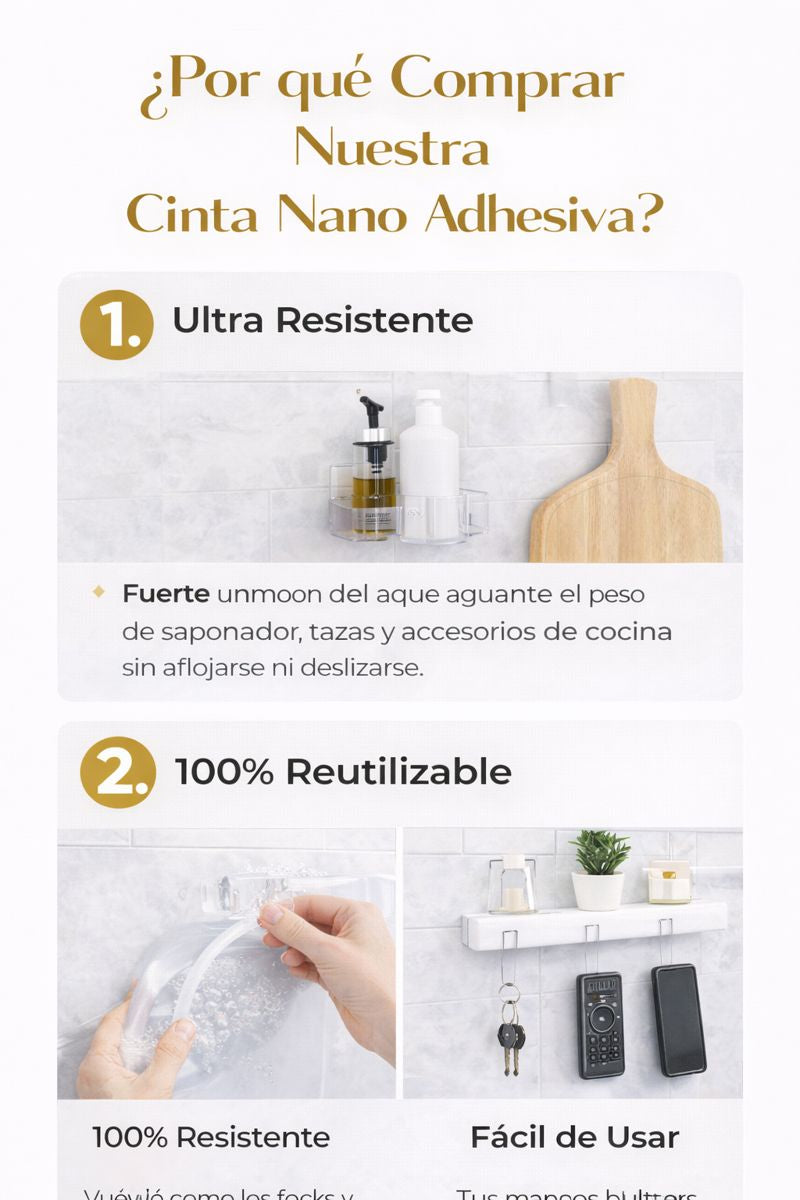 ¿En qué superficies funciona la cinta nano adhesiva?
