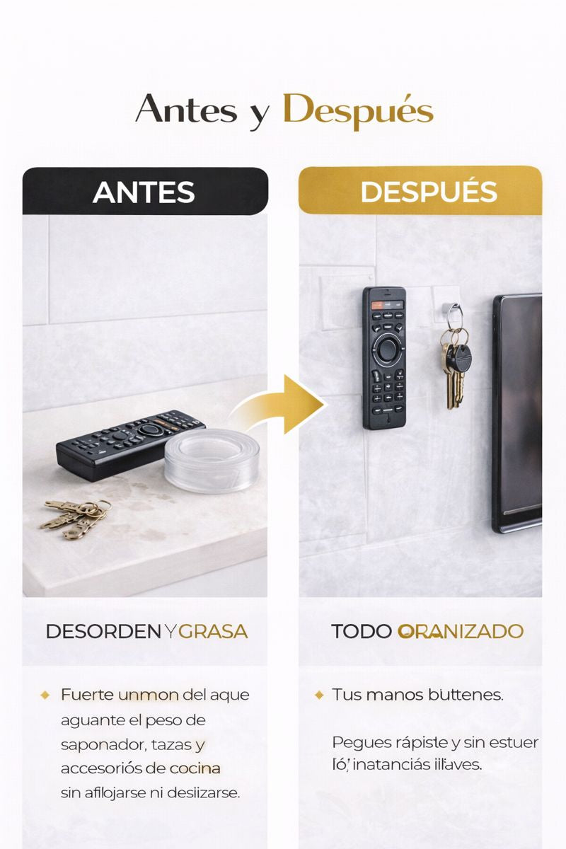 Puede soportar hasta 1 kg, dependiendo de la superficie y del tamaño de la cinta utilizada. Para objetos más pesados, se recomienda usar más cantidad de cinta.