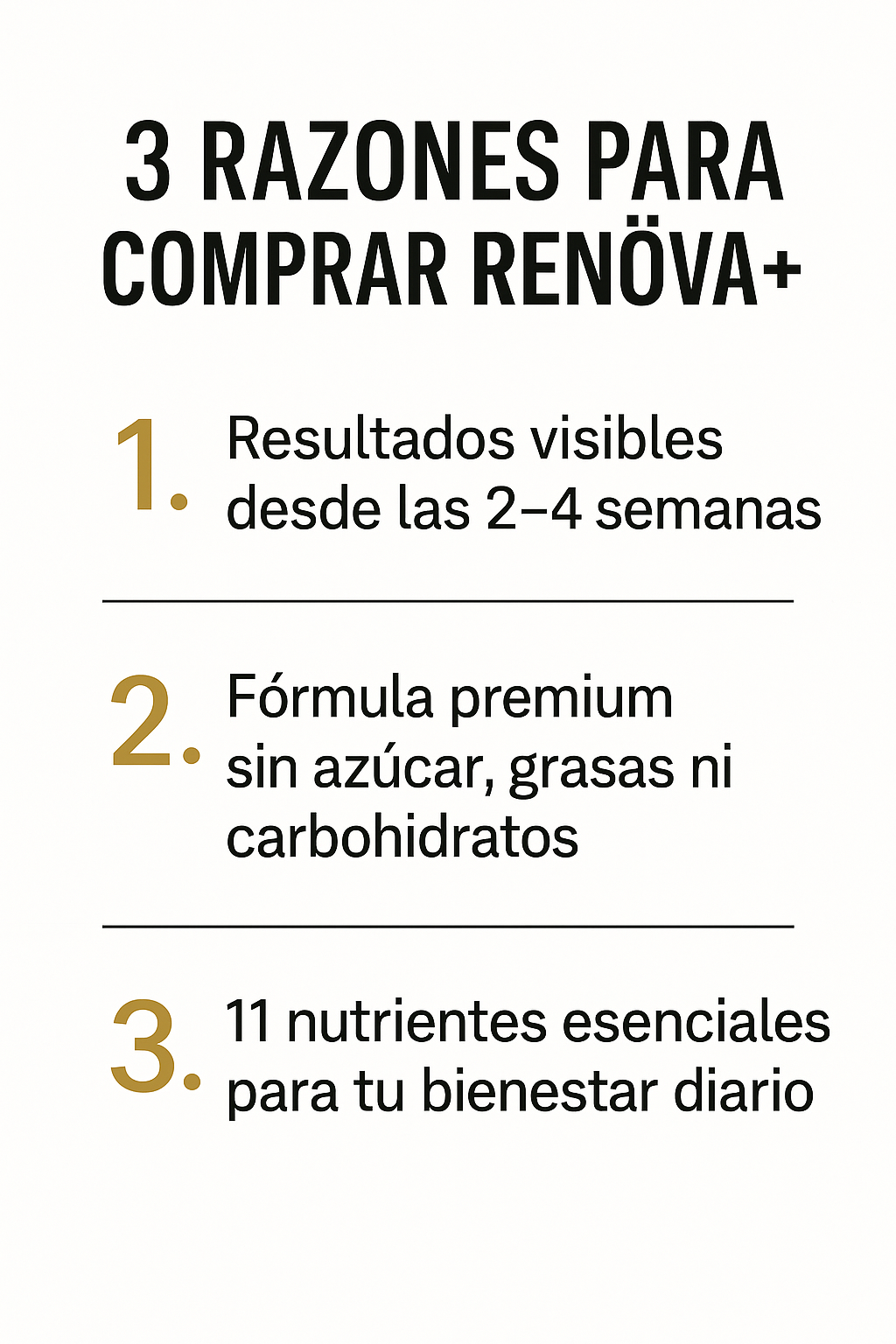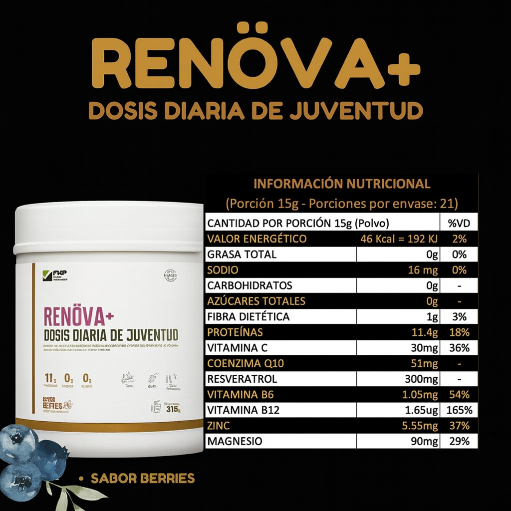 No. RENÖVA+ es 0% azúcar, 0% grasas y 0% carbohidratos. Su fórmula es segura, limpia y pensada para el bienestar diario.